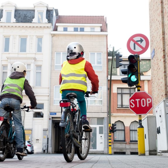 Helm Op Fluo Top wil de veiligheid van jonge voetgangers en fietsers in het woon-schoolverkeer vergroten. Kinderen die te voet of per fiets naar school komen, zijn in de donkere wintermaanden immers extra kwetsbaar. In de periode tussen november en eind februari vergroot het risico dat autobestuurders hen in het (schemer)duister niet of te laat opmerken. Een fluohesje zorgt voor betere zichtbaarheid op grote afstand, zodat automobilisten hun gedrag kunnen aanpassen en ongevallen kunnen vermijden. Het dragen van een fietshelm verkleint het risico op een ernstig hoofdletsel bij een ongeval of valpartij met meer dan 65%.1 Nederlands onderzoek toont aan dat hoofd- of hersenletsels bij fietsongevallen naar verhouding het vaakst voorkomen bij kinderen en jongeren.2 Zeker voor jonge fietsers en fietspassagiers is een fietshelm dus sterk aan te raden.