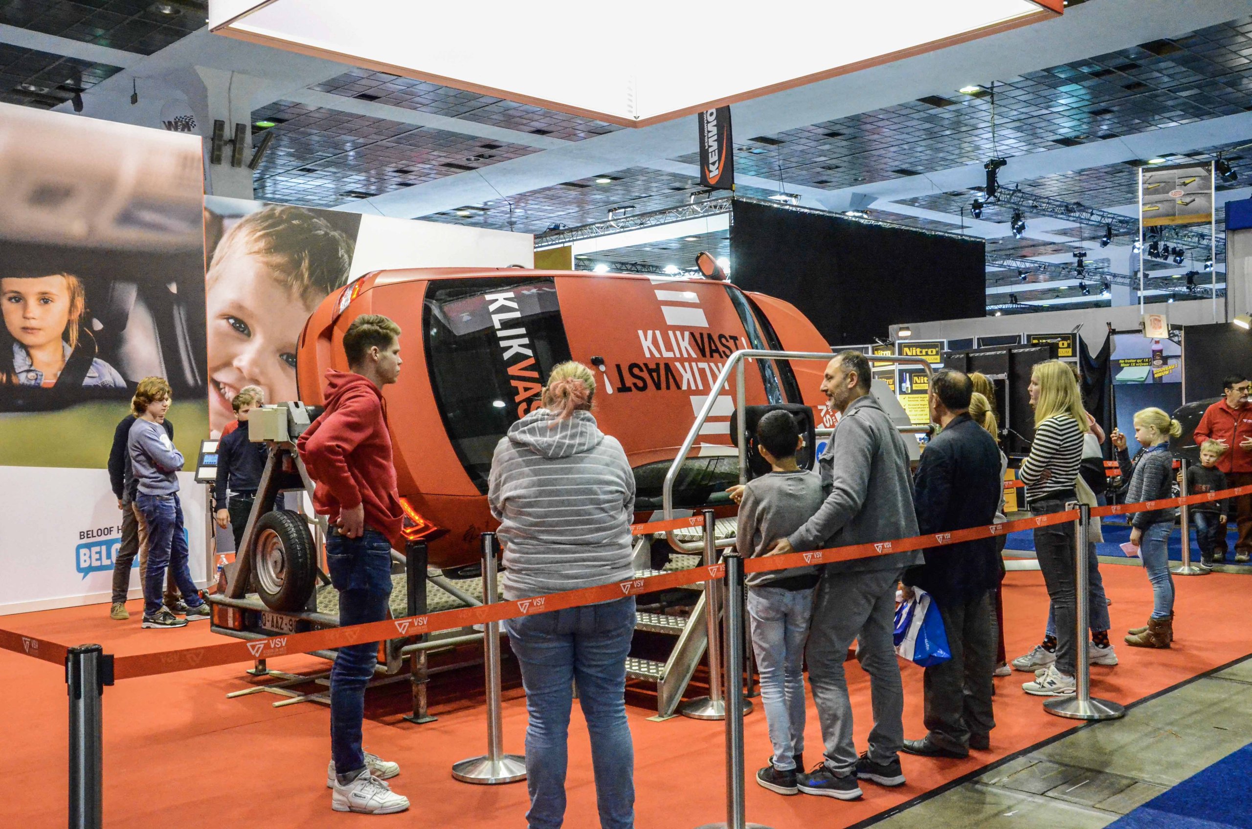De VSV-tuimelwagen is de blikvanger op de stand. Daarin kunnen bezoekers aan den lijve ondervinden waarom het superbelangrijk is om steeds je veiligheidsgordel te dragen, ook achterin en bij korte ritten. Uit onderzoek van de VSV blijkt immers dat iets meer dan 1 op de 7 Vlamingen (15%) er nog steeds niet van overtuigd is dat de gordel ook achterin de auto een noodzaak is. Zowat 1 op de 10 (11%) verklaart de gordel achterin niet consequent te dragen, een kleinere groep klikt zich als bestuurder (7%) of als passagier voorin (6%) niet stelselmatig vast. Een ritje in de VSV-tuimelwagen kan hen wellicht op andere gedachten brengen.