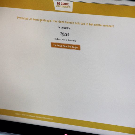 Van 23 tot Van 23 tot 30 april konden alle lagere scholen in Vlaanderen en Brussel deelnemen aan de tiende editie van De Grote Verkeerstoets, een online toets over verkeer en mobiliteit voor leerlingen uit het vijfde leerjaar. In totaal legden bijna 36.000 leerlingen de toets af, ruim de helft daarvan behaalde 17 punten of meer en is dus geslaagd. De Grote Verkeerstoets is een initiatief van de VSV met de steun van de Vlaamse overheid.